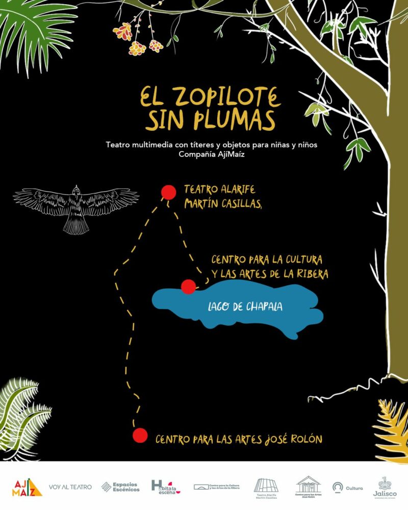 El colectivo artístico Aji Maíz presentará El zopilote sin plumas, una obra de teatro multimedia que se realiza usando títeres, objetos y música en vivo; la obra que está dirigida para niñas y niños se presentará en septiembre en Ajijic, Guadalajara y Ciudad Guzmán.