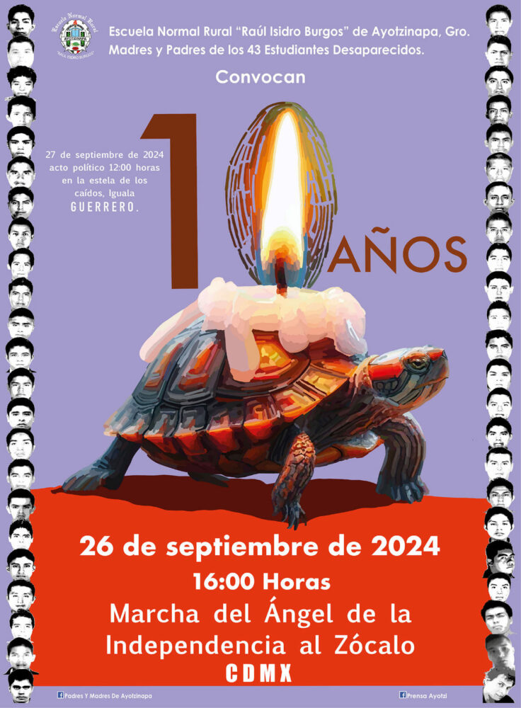 La tarde del viernes 6 de septiembre se llevó a cabo la Asamblea Nacional Popular con la finalidad de organizar la logística que integrará los eventos conmemorativos pertenecientes a los 10 años de la desaparición forzada de los 43 normalistas desaparecidos en Iguala, Guerrero.