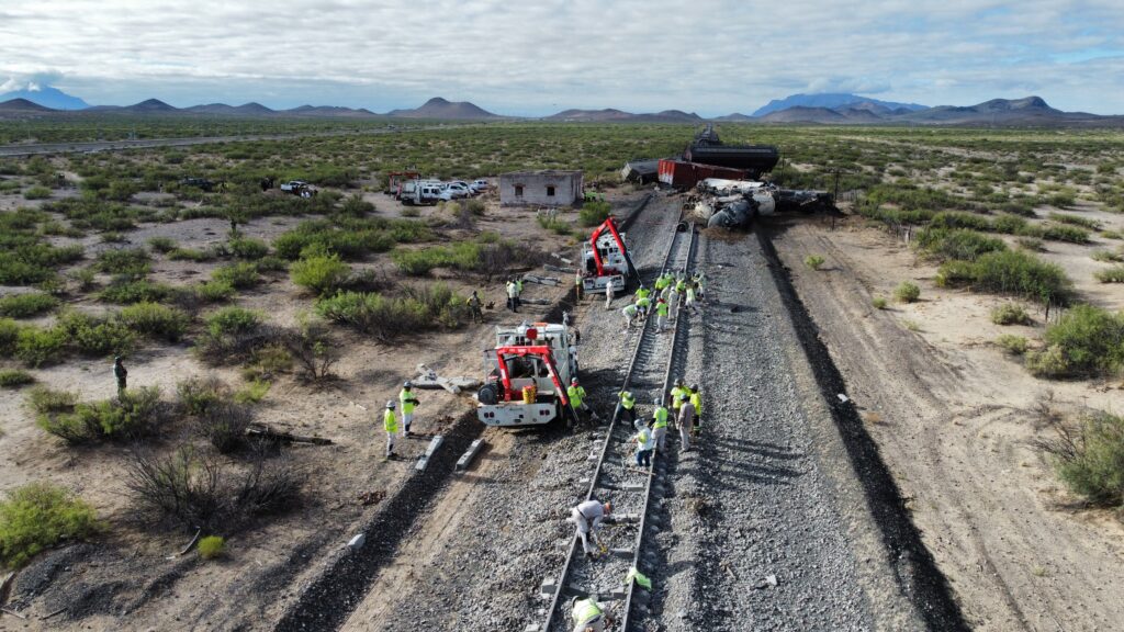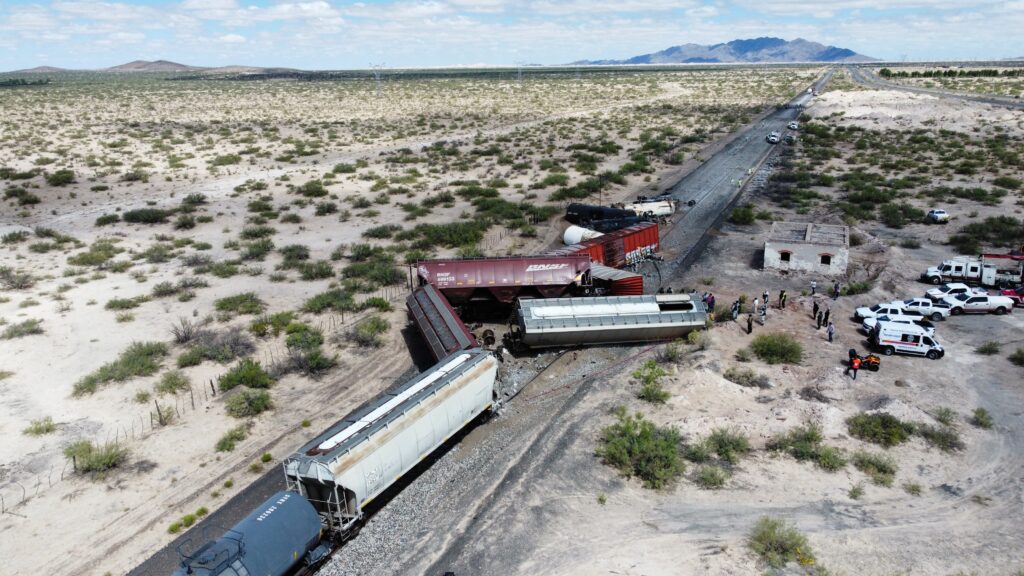 Fueron 12 los vagones que salieron de la vía férrea, de acuerdo con las autoridades, quienes reportaron que varias de esas unidades de Ferromex – empresa del Grupo México– transportaban materiales peligrosos, por lo que se generó un derrame de ácido sulfúrico.