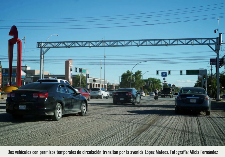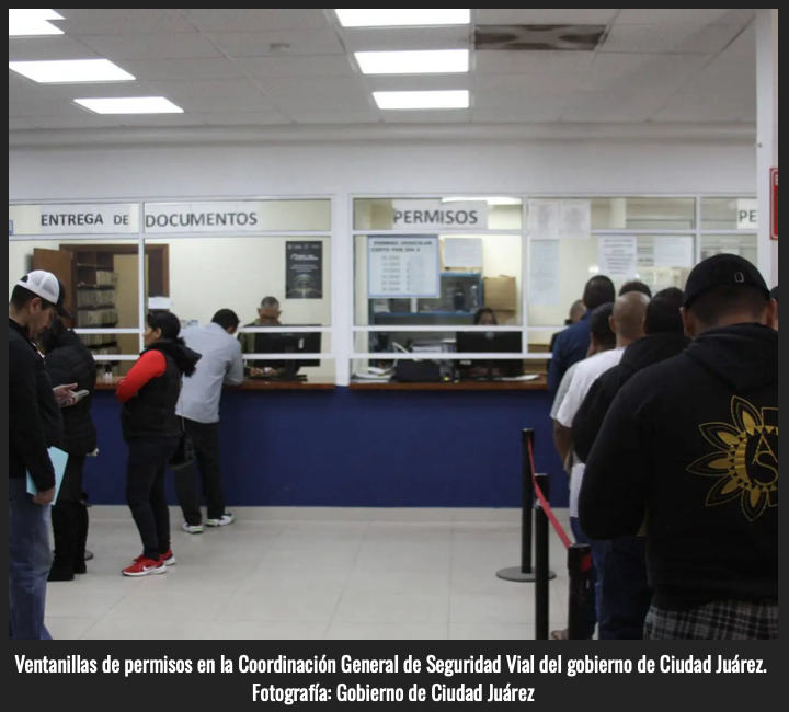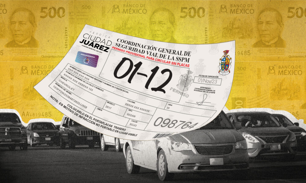 Con la complicidad de vendedores de automóviles usados, la Coordinación General de Seguridad Vial (CGSV) del gobierno de Ciudad Juárez expide permisos provisionales para circular sin placas a vehículos que incumplen con el esquema oficial, en una actividad irregular que tan solo en el último año pudo haber generado unos 42.5 millones de pesos –más de 2.2 millones de dólares–.