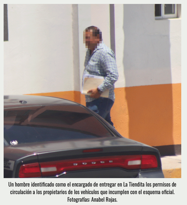 En vez de ser rechazados, los propietarios de autos usados que no cumplen con los requisitos oficiales para conseguir de manera legal el permiso provisional para circular sin placas, son enviados por los propios funcionarios de Seguridad Vial a La Tiendita, un negocio con venta de botanas y souvenirs.