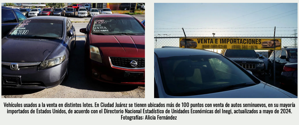 Sergio Grijalva Domínguez, líder del tianguis de autos Chavira Jilotepec y de la Asociación de Loteros de Ciudad Juárez que opera en La Tiendita, asegura que el esquema “es un trato especial” que las autoridades dan a los vendedores de vehículos usados a raíz del creciente número de carros que circulan sin placas en la localidad.