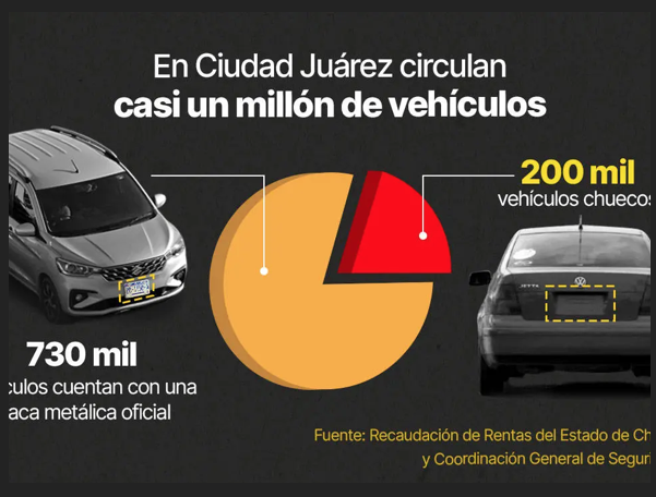 Al mismo tiempo son más de 200 mil los vehículos chuecos, es decir, sin placas oficiales, según estimaciones de Seguridad Vial del Municipio de Juárez. Esta cifra ofrece una dimensión del mercado de los permisos provisionales para circular, que en una importante porción se atiende a través del esquema paralelo con los loteros.