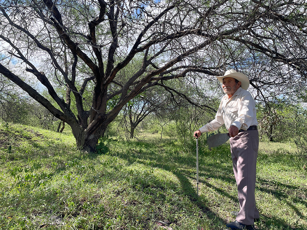 Don Salvador, junto con don Gabriel Ávila y Rogelio Juárez, son tres habitantes de este poblado que desde 1996 decidieron proteger los mezquites que crecen de manera natural en este ejido al reconocer el valor ambiental de estos árboles nativos y al reconocer también el valor social y de identidad de esta comunidad.