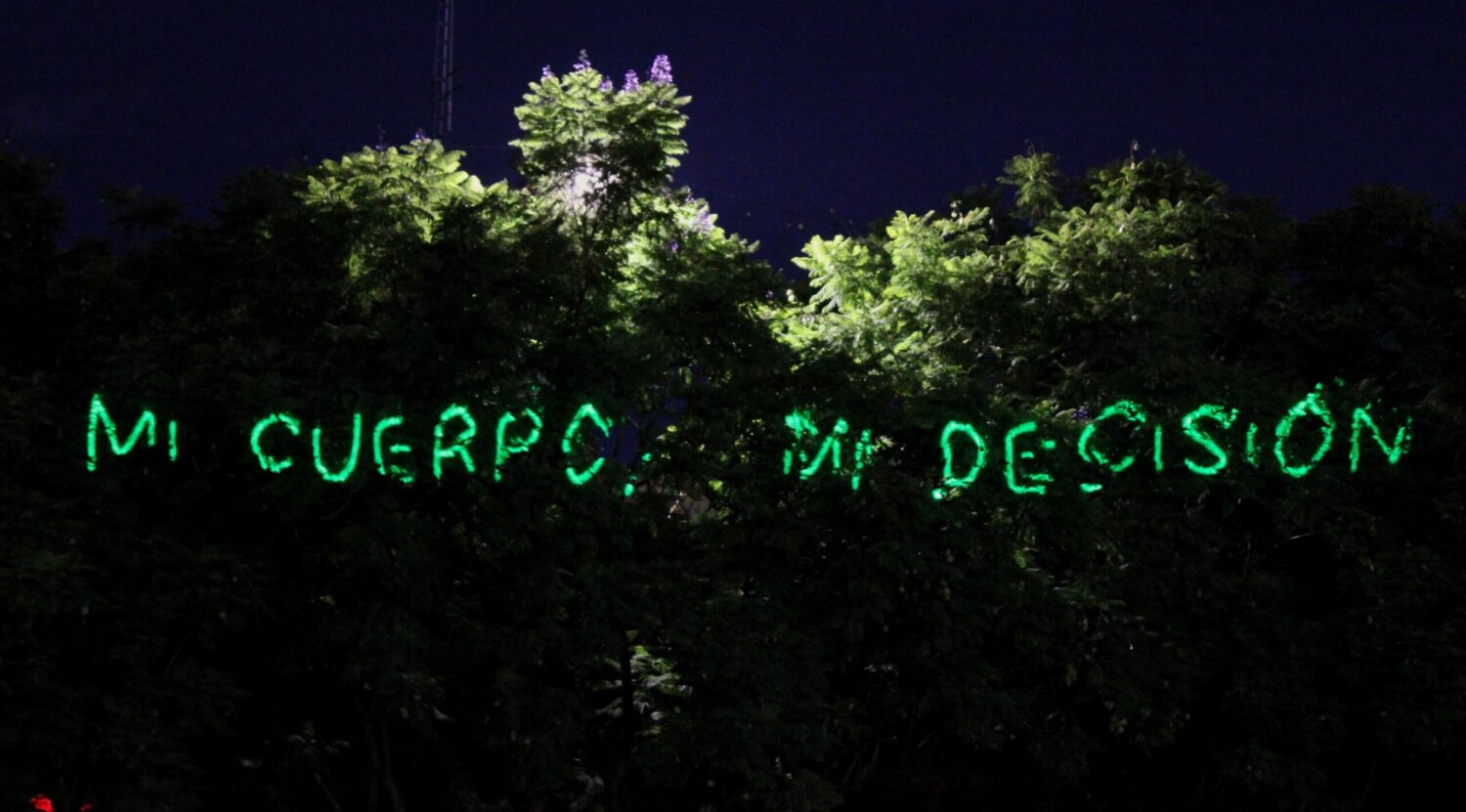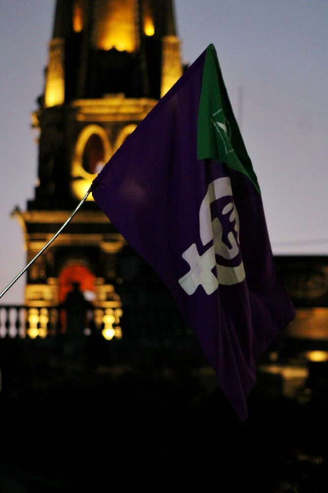 Las acciones también contemplaron la intervención del Congreso del Estado, el Teatro Degollado, el Palacio Municipal de Guadalajara, el Palacio de Gobierno de Jalisco, la Rotonda de las personas ilustres y la Minerva con la proyección de estas consignas además de “40 días para despenalizar” y “Mi cuerpo mi decisión”.