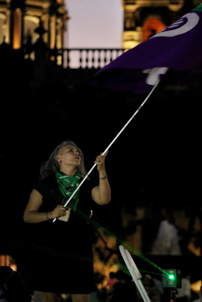 “¡Fuera aborto del código penal, es urgente que salga! Porque esto, como hemos visto en otros estados, es como un eslabón hacía que realmente haya un acceso al derecho a decidir. Ya tienen que subir el dictamen, que muchas de ellas y ellos ya tienen o ya anda por ahí en el Congreso rodando. Entonces, lo tienen que subir a votación y ahora no hay de que si sí o sí no o voto nulo. Ahora tiene que ser sí.”, manifestó Jazmín Quesada como parte de sus demandas al poder legislativo y ejecutivo.