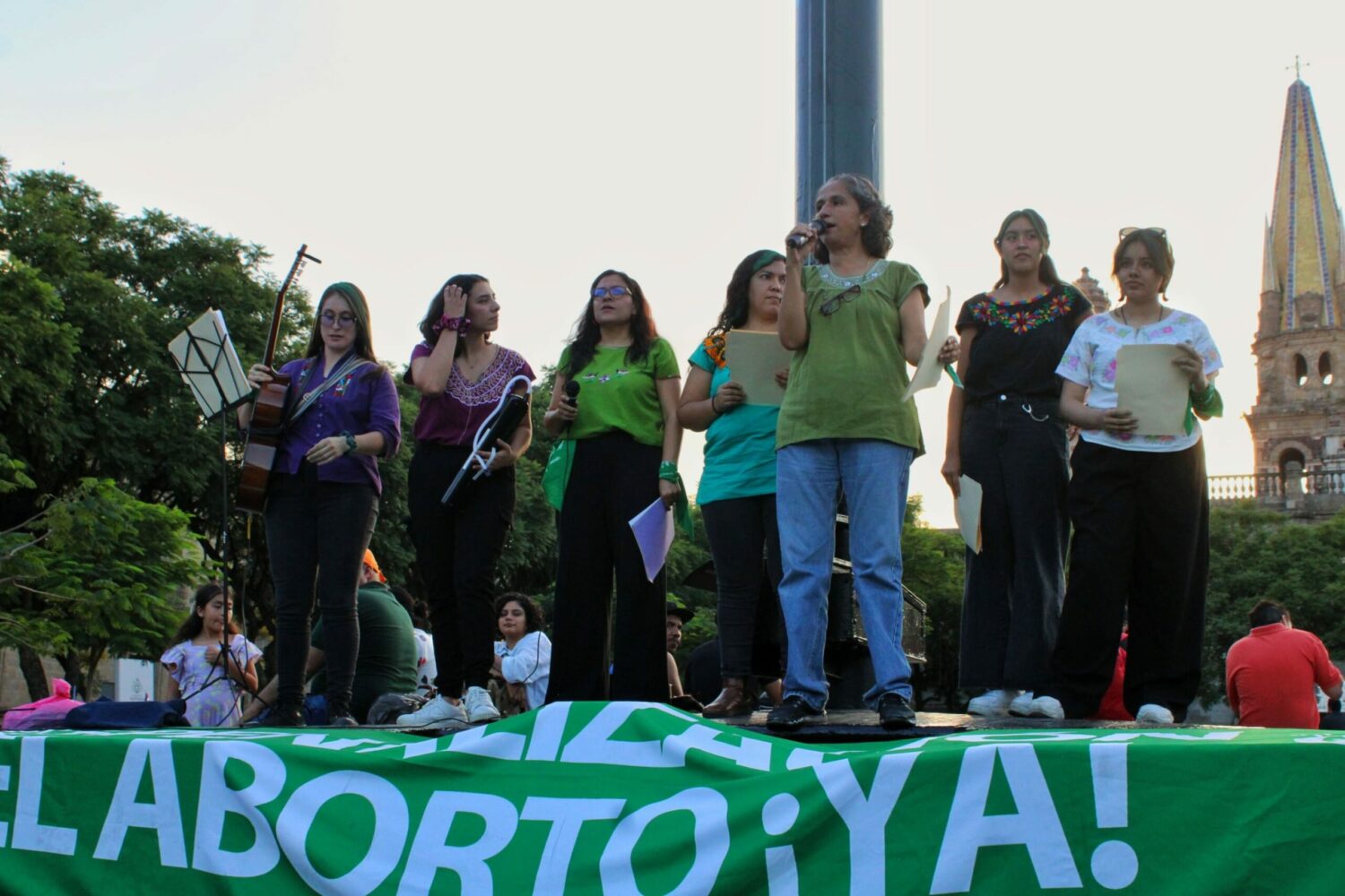 “¡Fuera aborto del código penal en Jalisco!”: con elotiza y concierto reclaman su derecho a decidir.