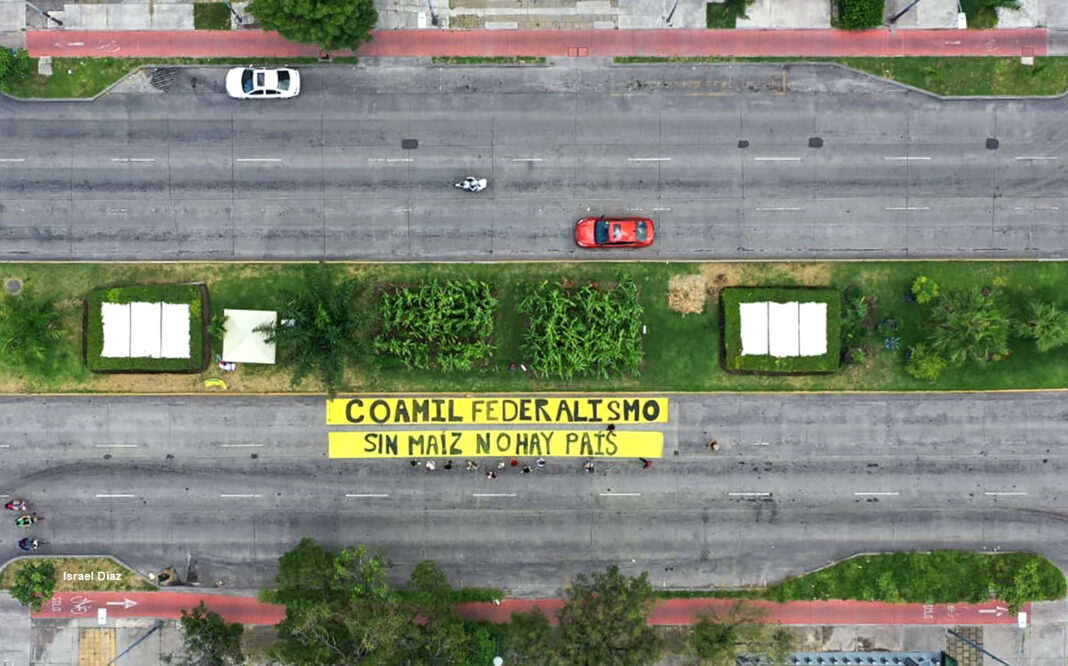 En el marco del Día Nacional del Maíz, este domingo 29 de septiembre, desde el centro de la ciudad de Guadalajara, México, el Colectivo Coamil Federalismo -proyecto autonómo que trabaja la agricultura urbana desde el espacio público- demandó la protección del maíz a nivel nacional.