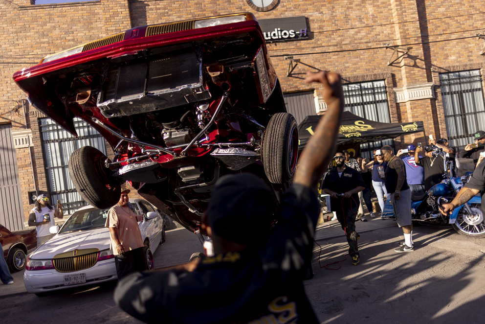 El presidente del capítulo Montreal del Luxurious Car Club tiene un Impala rojo con un rayo dorado pintado sobre el capó. Las viejas fábricas de ladrillo rojo del norte de la Ciudad de México están reflejadas en la pulida superficie de la ranfla. Cuando empieza a brincar y finalmente llega a ponerse casi vertical parece un corcel de guerra.