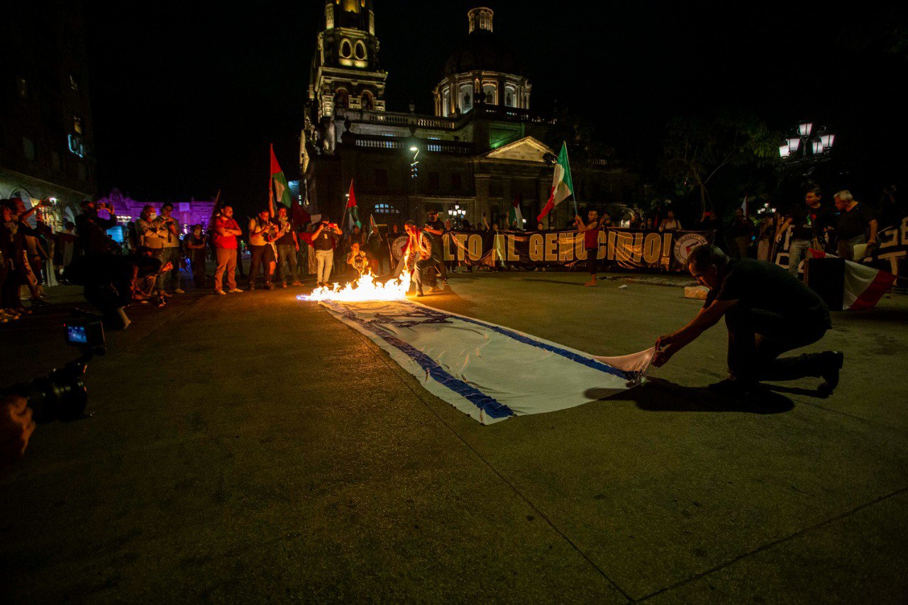 Durante el tercer día de la Jornada “Sin Palestina No Hay Futuro”, cientos de personas marcharon en Guadalajara para conmemorar un año del genocidio en Gaza. Los manifestantes renombraron simbólicamente la Plaza Escorza y exigieron al gobierno de Jalisco, la ruptura de relaciones con Israel.