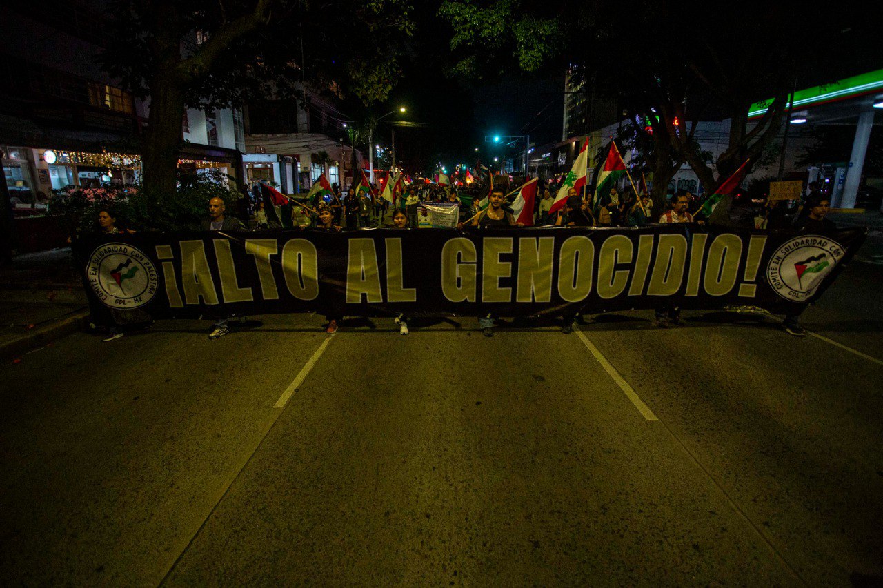 Los manifestantes avanzaron hacia la Plaza Imelda Virgen, marchando por la avenida Juárez mientras coreaban consignas en apoyo al pueblo palestino y en rechazo a las políticas del Estado de Israel. El ambiente en la marcha era de urgencia y determinación, reflejando el sentir de los participantes que, con pancartas y banderas, exigían justicia y el fin de la ocupación israelí.