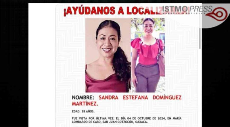 La Fiscalía oaxaqueña, a través de una Ficha de No Localización difundió que la abogada viajaba con su esposo en el municipio mixe de María Lombardo de Caso, Oaxaca, ubicada en los límites territoriales del estado de Oaxaca y Veracruz cuando desapareció, y su camioneta ya fue localizada, pero ellos no.