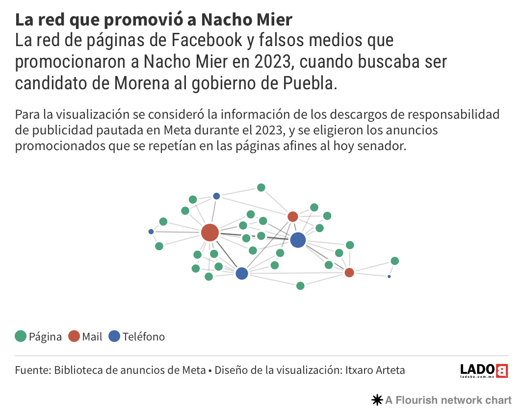 El año pasado, cuando se definía al interior del partido Morena quién sería el candidato al gobierno de Puebla, usuarias y usuarios de Facebook vieron aparecer en sus redes publicaciones que promocionaban las acciones de Ignacio Mier Velazco, en ese entonces líder de la bancada de Morena en la Cámara de Diputados. La promoción venía de una red de al menos 18 páginas que se hacían pasar por medios de comunicación o perfiles partidistas, pero en realidad difundían desinformación o publicidad pagada.
