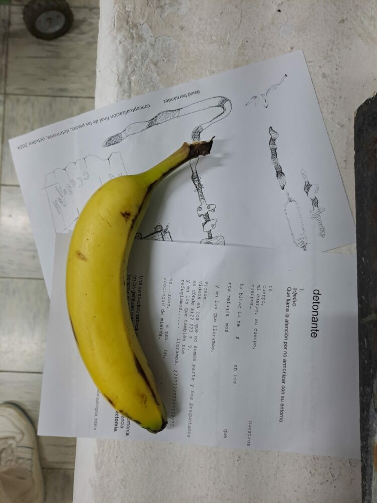 La exposición “DETONANTE” del artista queer, David Hernández, es un posicionamiento frente a la industria del porno y la representación que ésta hace sobre los penes. Con un total de seis piezas busca mostrar la diversidad de formas, tamaños y condiciones que no suelen aparecer en este mercado del cine, pero sobre todo, hacer una crítica a la figura hegemónica del falo masculino.