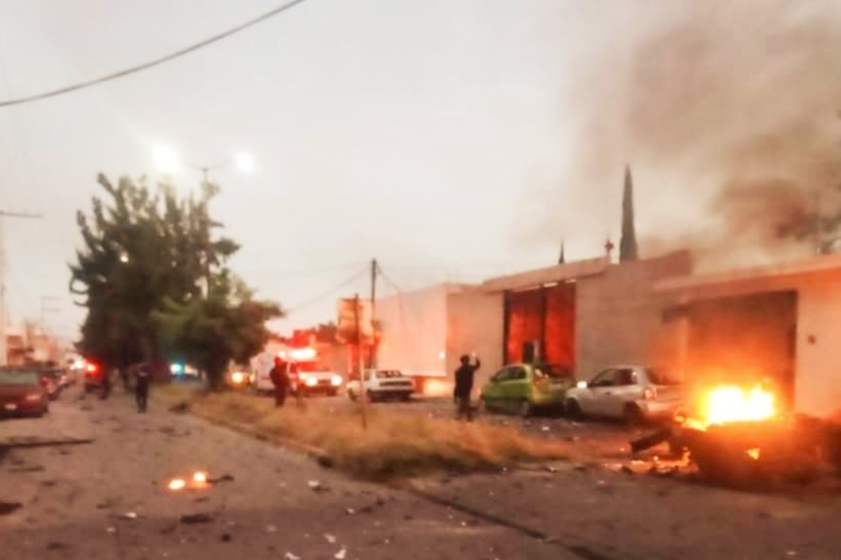 “Así es despertar hoy 24 de octubre en Acámbaro, Guanajuato. Yo no sé cuál es la seguridad que tenemos”, narra una mujer que graba con su teléfono celular los fierros negros que quedaron del coche bomba y los escombros de las fachadas de algunas casas aledañas a las instalaciones de la Secretaría de Seguridad del municipio.