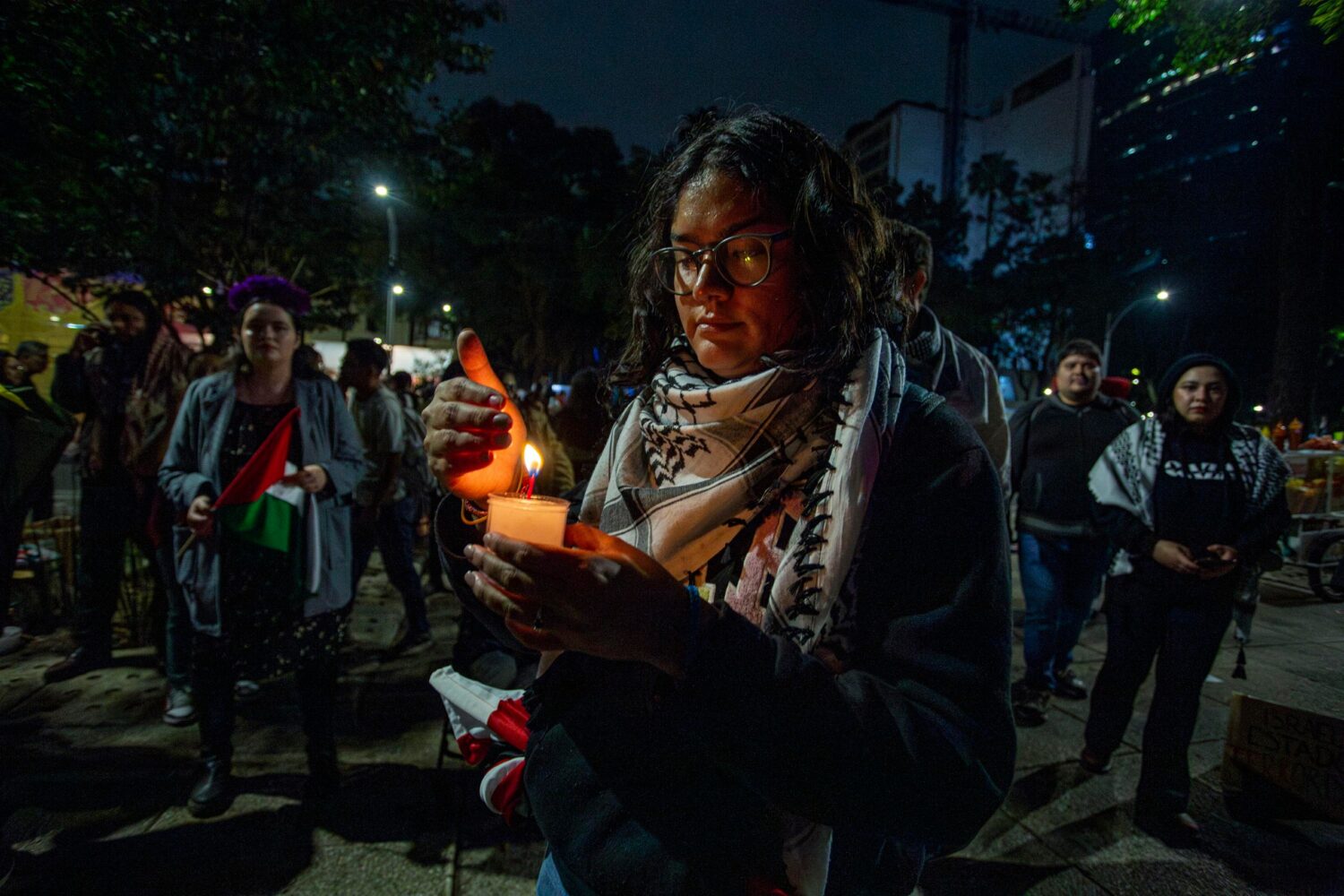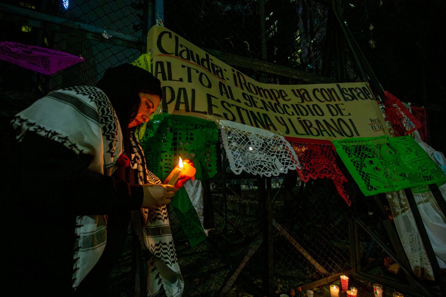 Con una caminata y ofrenda en la Ciudad de México, la Plataforma Común por Palestina exige el fin de las agresiones en Gaza y Líbano, y llama al gobierno mexicano a cortar relaciones comerciales con Israel.