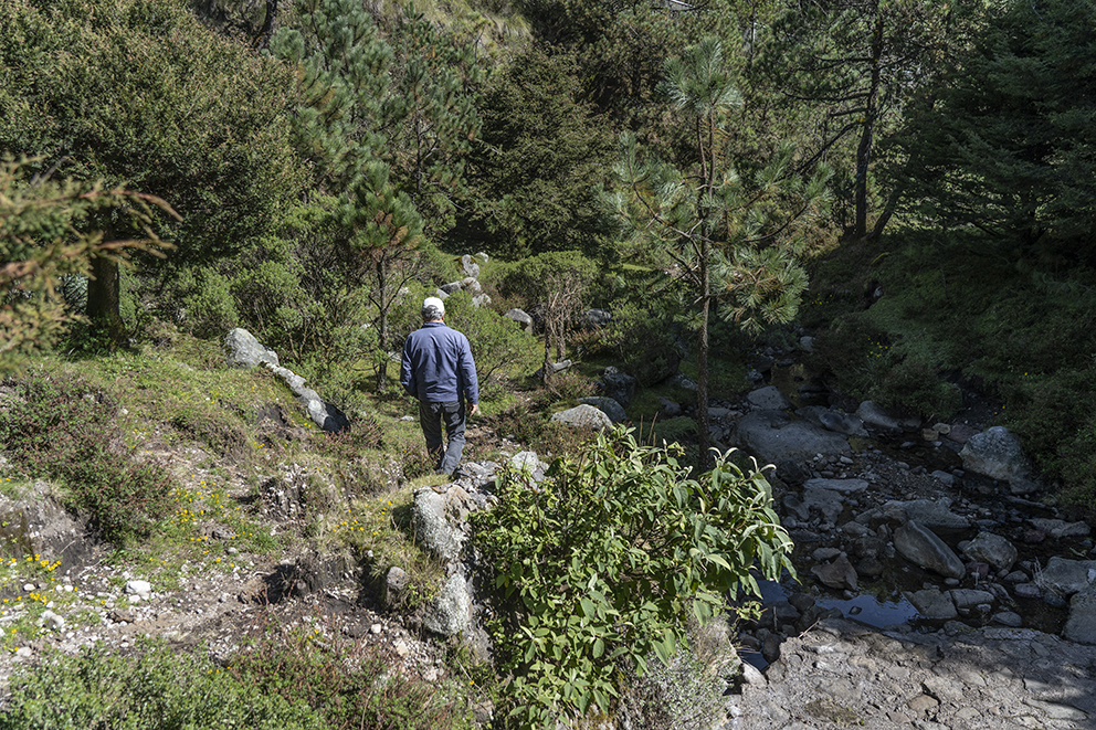 Gerardo y su hija Ángela son parte de la Brigada comunitaria de monitoreo del ajolote de arroyo de montaña de Montealegre, que documenta la cantidad de especímenes que aún viven en este rincón casi secreto de las tierras Ejidales de San Nicolás Totolapan, en el Ajusco.