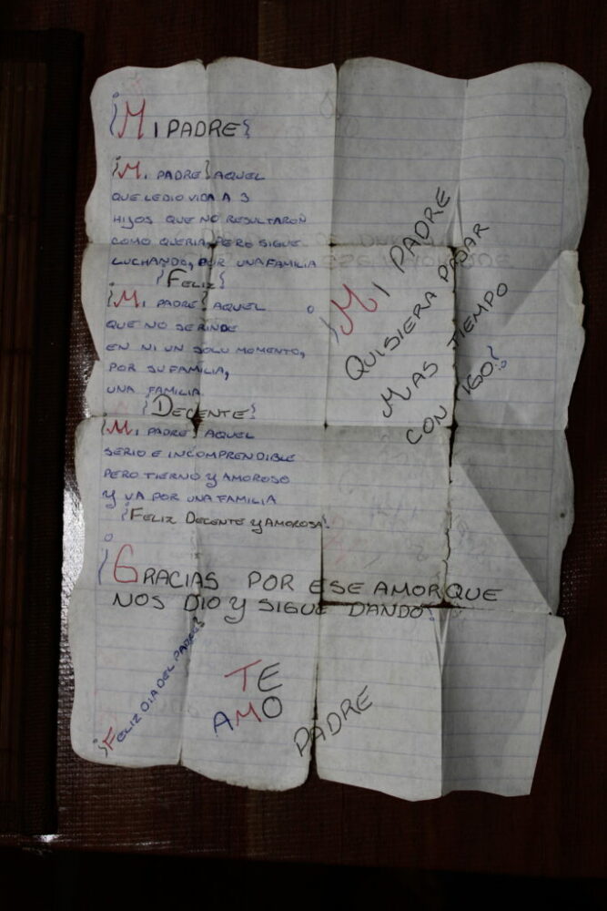 Las cartas que Fanny escribió las conserva su familia. Óscar lleva doblada en su cartera una que le hizo para el día del padre y cuyo mensaje habla de que nunca se rinde por sacar adelante sus hijos.