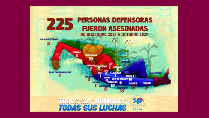 La defensa de la tierra, el territorio, el medio ambiente y los derechos civiles han convertido a México en un cementerio, ya que en los últimos seis años fueron asesinadas 225 personas defensoras en el país.