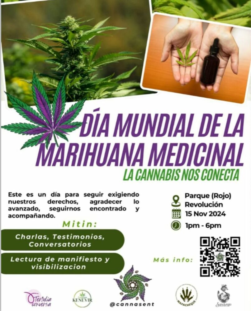 Con motivo del Día Mundial de la Marihuana Medicinal, la organización CannaSent convoca este 15 de noviembre a un mitin y tardeada donde invitarán a todas las personas que forman parte de la comunidad cannábica, medios de comunicación y población en general para conocer sobre el uso medicinal del cannabis, pero también para exigir un alto a la criminalización de su consumo.