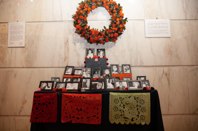 Además de la exposición, Deirdre y Nardy Silva, integrantas de la colectiva, coordinaron la creación de un sobrio altar dedicado a víctimas de feminicidios en México y tres países más. Rememorando y renombrando la tradición mexicana como el Día de las muertas, se rindió homenaje a 24 mujeres. Las representantas de la colectiva señalaron que, aunque es imposible nombrar a todas las víctimas, seleccionaron estas historias porque atravesaron de una manera más profunda a las miembras del grupo.