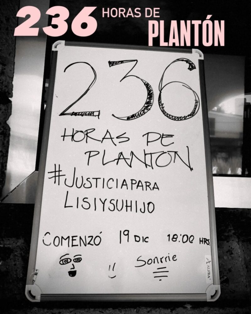 Acumulando más de 250 horas en plantón desde el pasado 19 de diciembre y en vísperas de los festejos del fin de año, Lisi ha declarado en su último comunicado que no se moverá de Casa Jalisco hasta que Patricio vuelva a su lado.