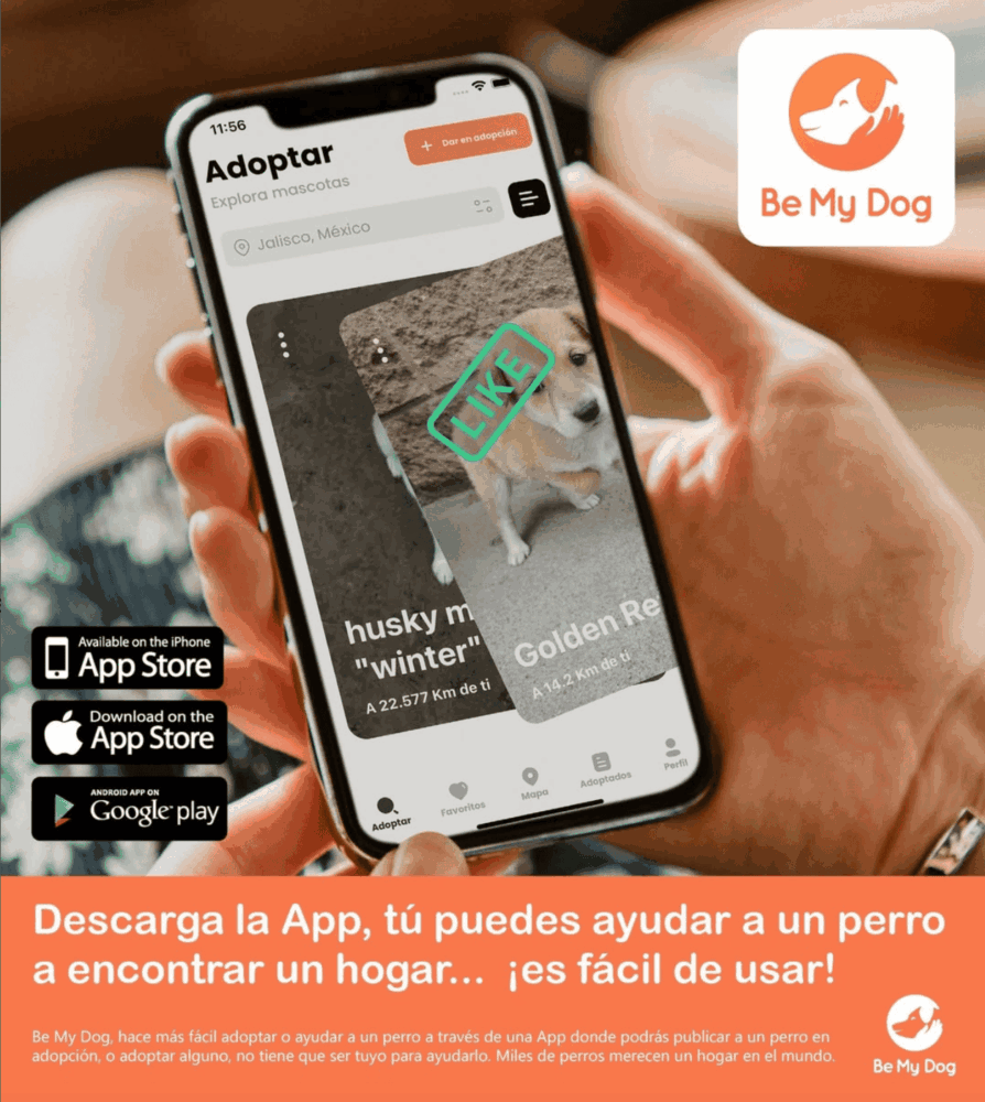 Be My Dog está disponible para todxs aquellos que busquen unirse a través de su página web: https://www.bemydog.org/ y en Apple Store: (https://apps.apple.com/mx/app/be-my-dog/id1603397958?l=en-GB) y Play Store: (https://play.google.com/store/apps/details?id=com.tinderperros&pli=1)