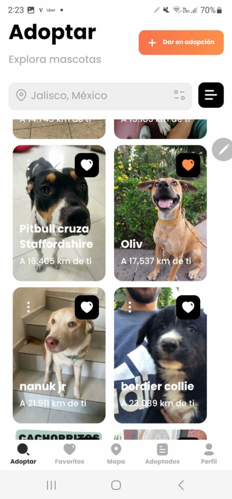 “La app no tiene un match como tal, sino que al momento en que tú eliges un perrito que te agrade, la app guarda la información en la sección de favoritos. Esto es para facilitar el proceso de selección y visualización, donde la persona puede ver toda la información del perrito, kilómetros de distancia a la persona que pone en adopción, ubicación geográfica y datos de contacto con el dueño del perro”, informó Luis.