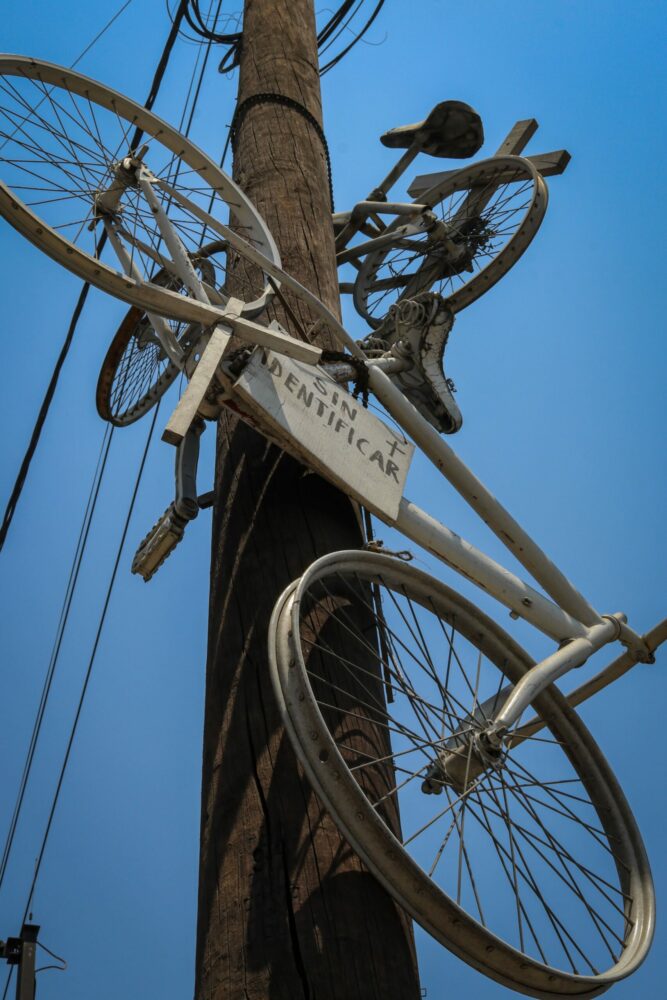 ¿Sabes qué significan las decenas de bicicletas y zapatos blancos que aparecen colgados en algunos postes de Guadalajara? Te anticipamos que no fueron puestos para decorar la ciudad, sino para registrar los accidentes viales y para hacer conciencia de lo vulnerables que son las personas ciclistas y peatones, que día a día se enfrentan al régimen de la máquina, del desplazamiento y la velocidad.