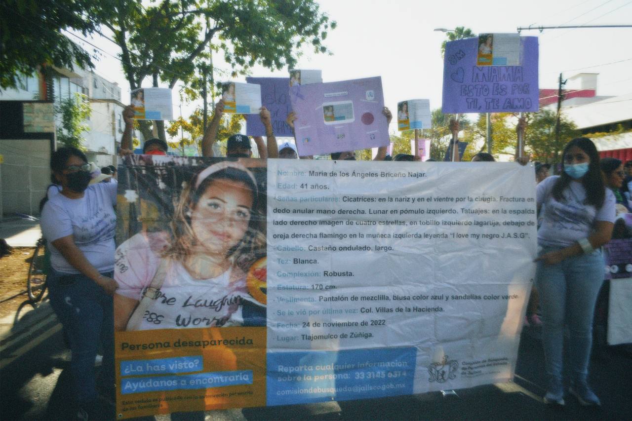 A su lado caminaba Rebeca, quien brinda acompañamiento psicosocial a la madre de Abigail Fernández, desaparecida el 14 de septiembre de 2021, cuando salió de su trabajo en una agencia de automóviles en la Avenida Américas en la colonia Ladrón de Guevara.