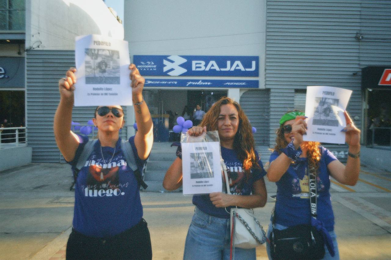 La joven estuvo allí junto con su madre y sus amigas, repartiendo volantes que mostraban la imagen de su agresor, un exprofesor de su preparatoria que, a pesar de las denuncias, sigue dando clases.