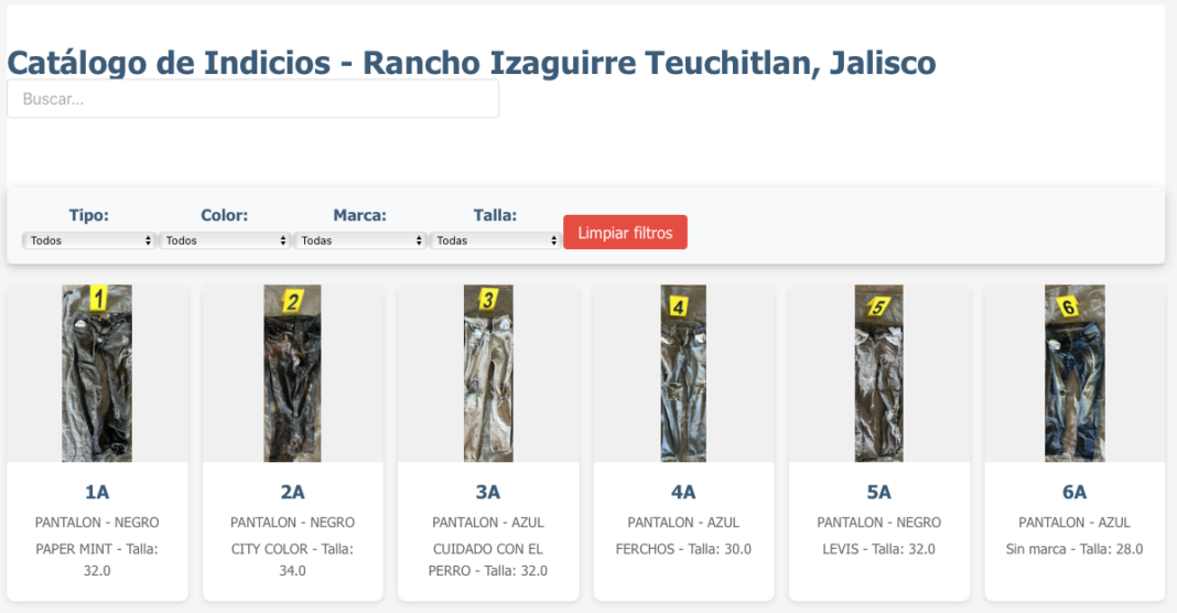 Como una forma de facilitar la revisión de las 492 prendas que la Fiscalía de Jalisco localizó en el Rancho Izaguirre -ubicado en la comunidad La Estanzuela en Teuchitlán-, el activista Ángel Abundis creó una plataforma digital que facilita la búsqueda por tipo de prenda, color, marca o talla.