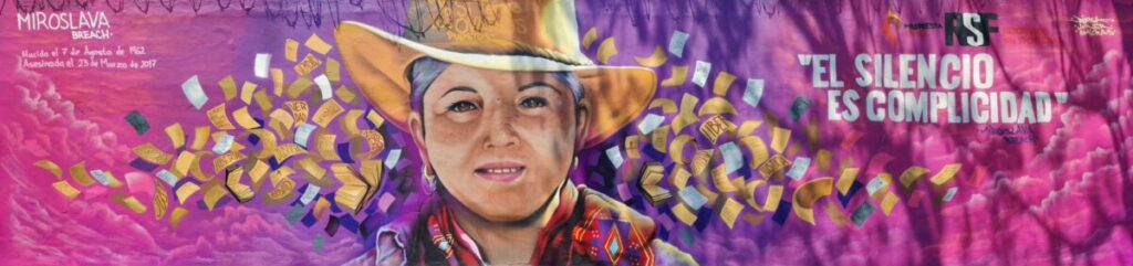 Por eso es que el mural no sólo busca honrar la vida de Miroslava, como mujer periodista, sino que también busca inspirar a otras personas a levantar la voz contra la injusticia y la impunidad y “honrar en ello la labor de las y los periodistas en México a quienes les ha arrebatado su vida por informar”, expresó durante el evento Balbina Flores, representante de Reporteros Sin Fronteras (RSF) en México.