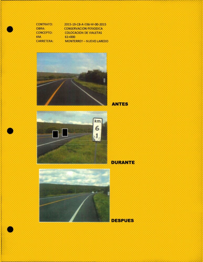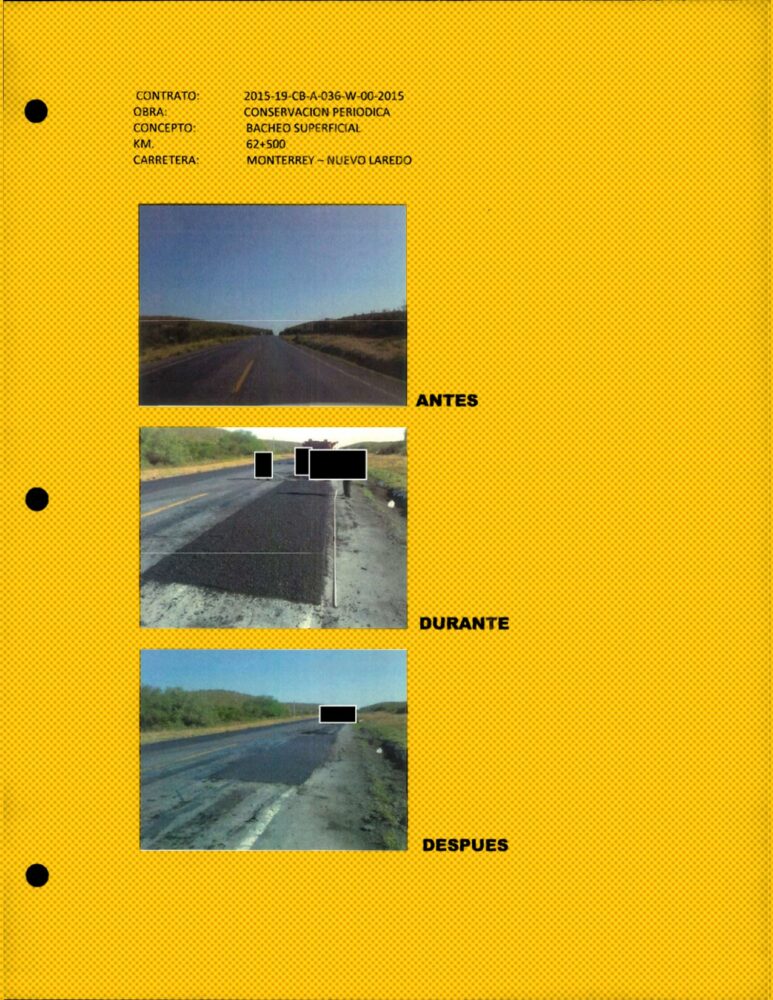 Solo se encontraron pruebas de cumplimiento en 46 contratos de caminos y carreteras principalmente en Nuevo León, Oaxaca, Sonora y San Luis Potosí, entre otras entidades. La mayoría de los documentos son actas de entrega-recepción y, en pocos casos, bitácoras con fotos, evidencias que los especialistas consideran poco fiables.
