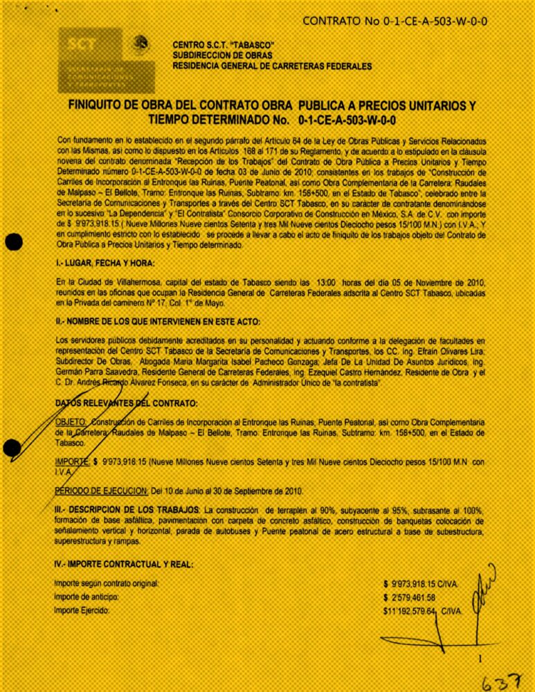Este es solo uno de los cientos de contratos de obras de infraestructura que el Gobierno mexicano dejó en manos de Empresas que Facturan Operaciones Simuladas (EFOS), como define el Servicio de Administración Tributaria (SAT) a las compañías que existen solo en el papel.