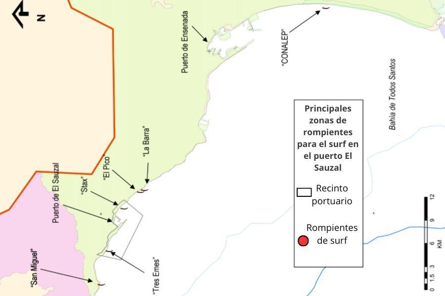 El surf comparte la bahía con la actividad portuaria de Ensenada, Baja California, al noroeste de México con vista al Pacífico. La expansión del puerto comercial, turístico y naval de la ciudad de Ensenada ha afectado zonas de oleaje, pero ante el anuncio del proyecto de ampliación del puerto El Sauzal, la comunidad surfista no está dispuesta a sacrificar ni una ola más.