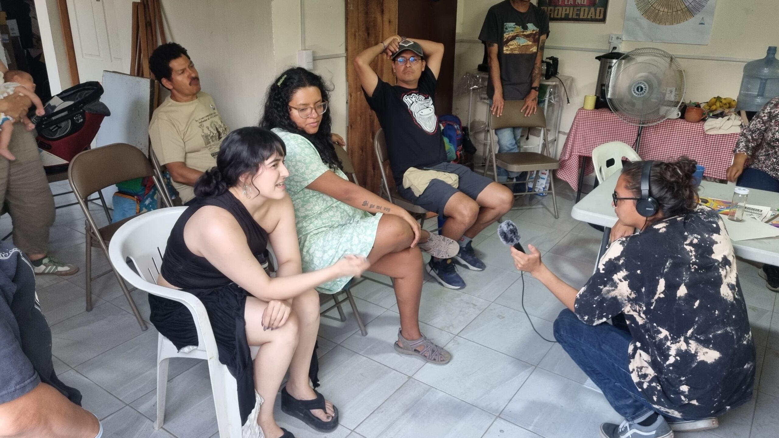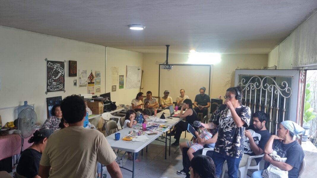 En el huerto comunitario del colectivo Un Salto de Vida, en El Salto, Jalisco, se reúnen alrededor de 40 personas para una sesión de escucha comunitaria. Con talleres y actividades, comida, y canciones de lucha, tres generaciones se encuentran para escuchar un podcast producido por la misma comunidad, y que hace un recuento las dos décadas de historia del colectivo.