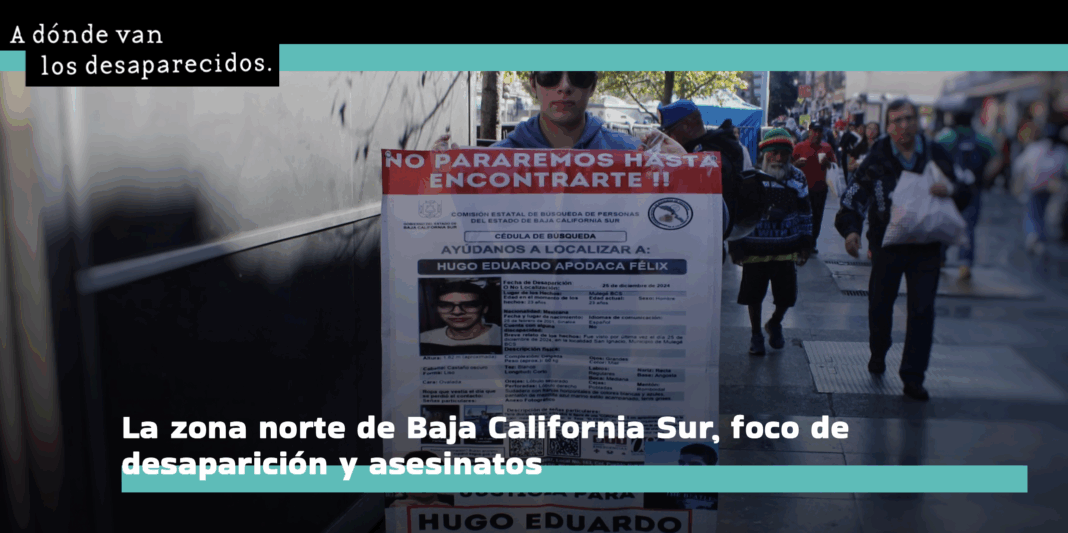 “En Baja California Sur, los índices más altos de desaparición son en La Paz y San Lucas. La zona norte siempre ha tenido un índice muy bajo. Pero hace cuatro, cinco meses, se ha estado incrementando a números rojos. Desapariciones de jóvenes, de 18 a 22 años”, explica Iris Manríquez, representante del colectivo Búsqueda x La Paz, que reúne alrededor de 120 familias de BCS.