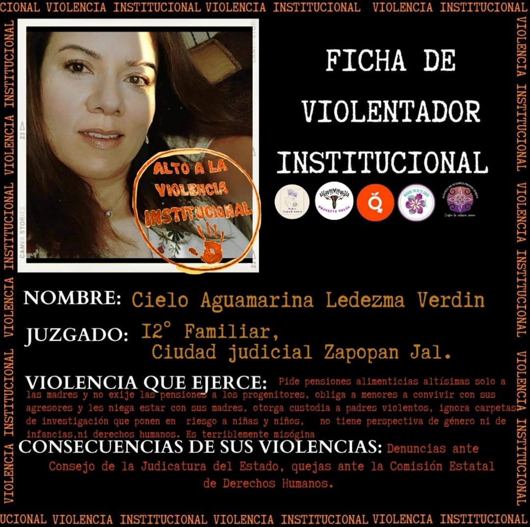 Aunque no figura en la lista de Defensorxs, la ganadora a ocupar el cargo en los Tribunales Colegiados del Distrito Judicial 1, en materia civil, Cielo Aguamarina Ledezma Verdín ha sido muchas veces señaladas por colectivas que luchan contra la violencia vicaria, pues esta jueza “en casos de disputa de custodias y pensión alimenticia, siempre da prioridad a los hombres por el hecho de ser hombres, poniéndolos incluso por encima del bienestar de los menores”, así lo denunciaron quienes integran la Alianza de Madres Protectoras contra la Violencia Vicaria.
