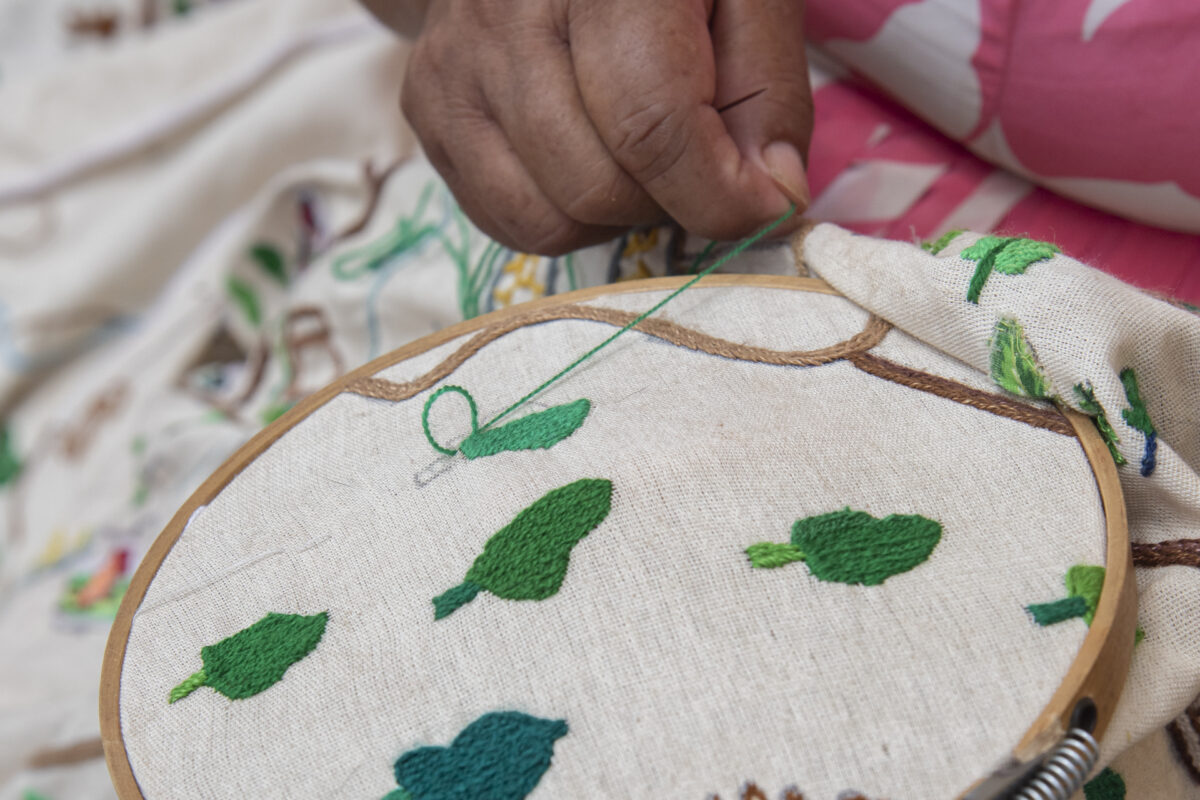 Amada es una de las mujeres que apoyó en el bordado y vive desde el 2020 en el desplazamiento. En entrevista establece su intención por volver a casa, pero también expresa su preocupación porque hoy en día no pueden hacerlo.