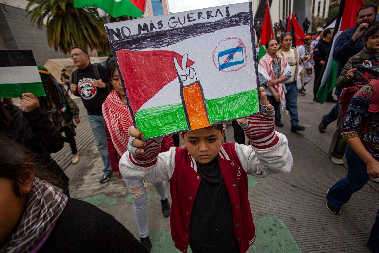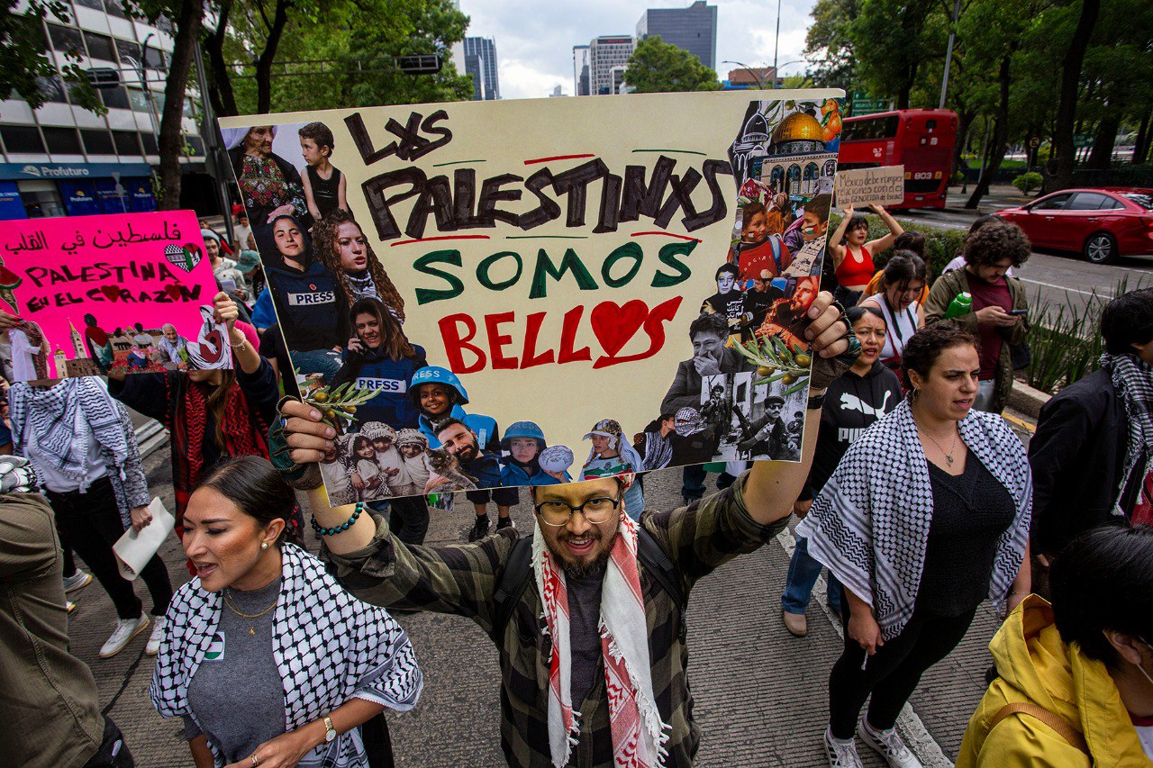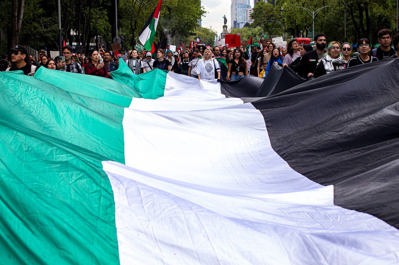 En el marco de una jornada global por Palestina, colectivos y organizaciones sociales marcharon del Ángel de la Independencia al Zócalo capitalino para exigir al gobierno de México romper relaciones diplomáticas con Israel y denunciar el genocidio en Gaza.