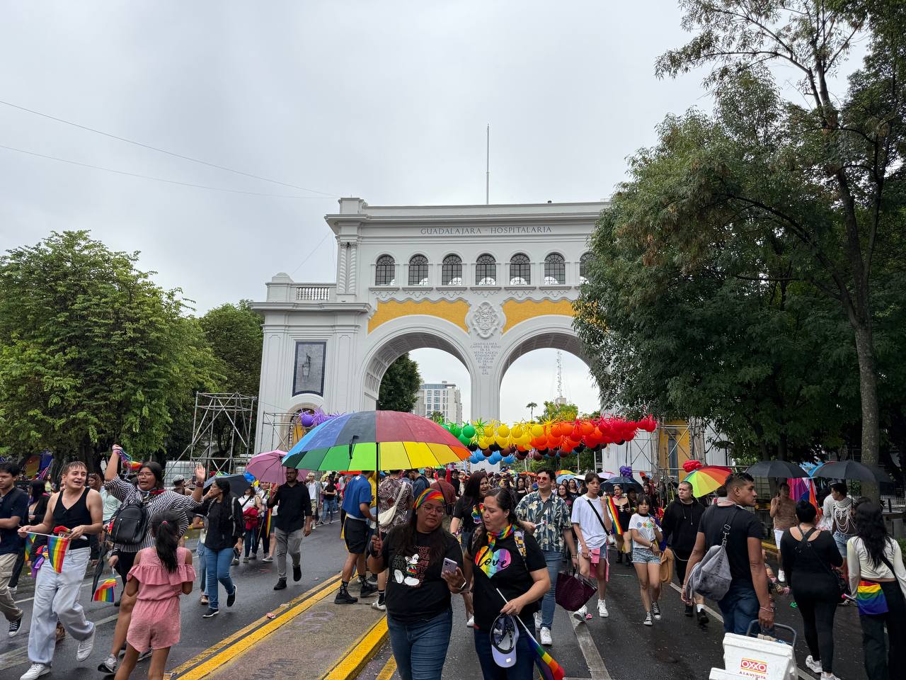 Desde la una de la tarde, la Plaza Liberación en Guadalajara comenzó a llenarse de vida. Banderas arcoíris ondeaban entre paraguas, abanicos, vestidos coloridos, pancartas, alas, coronas de flores y cuerpos diversos que caminaban hacia el mismo destino: la Marcha del Orgullo LGBTIQ+ 2025.