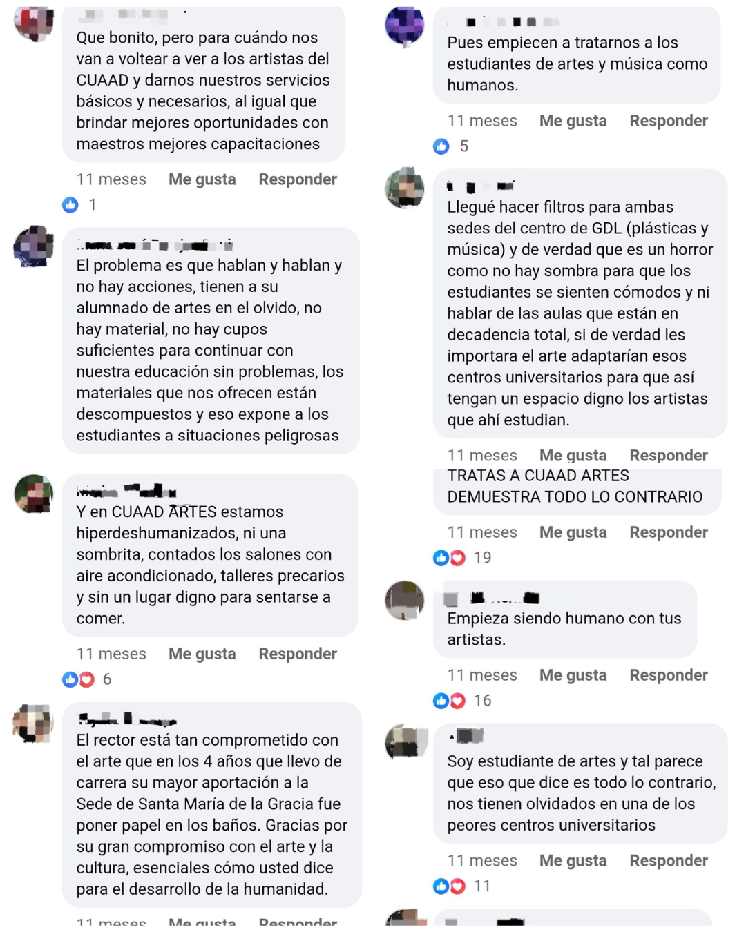 Aunque la UdeG ha asumido públicamente su compromiso con el arte, incluso, lo establece así en su Plan de Desarrollo Institucional: “Promover las producciones artísticas universitarias en apoyo a los creadores.”, sus estudiantes denuncian que ese apoyo no llega a los campus de Santa María y San Agustín del CUAAD.