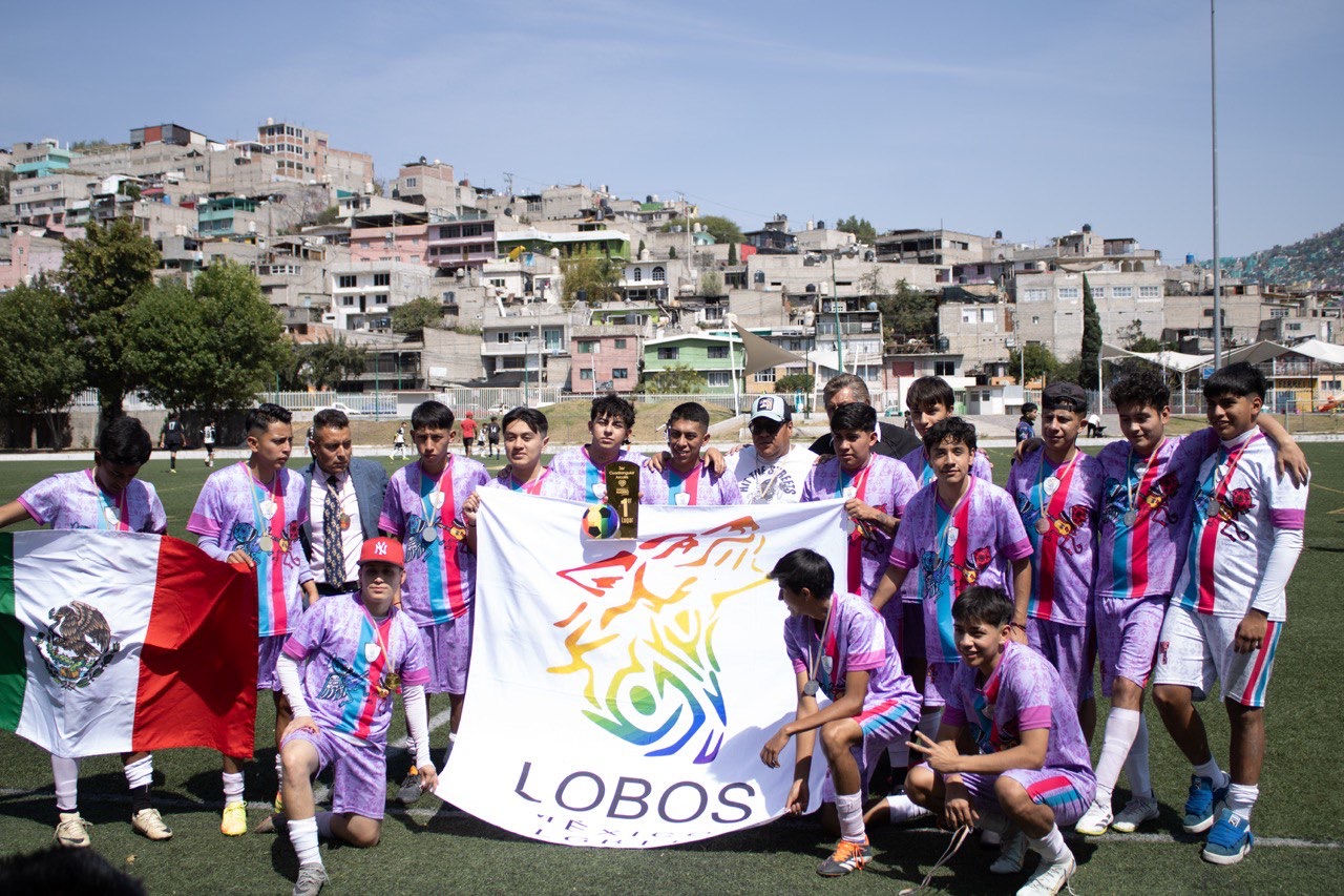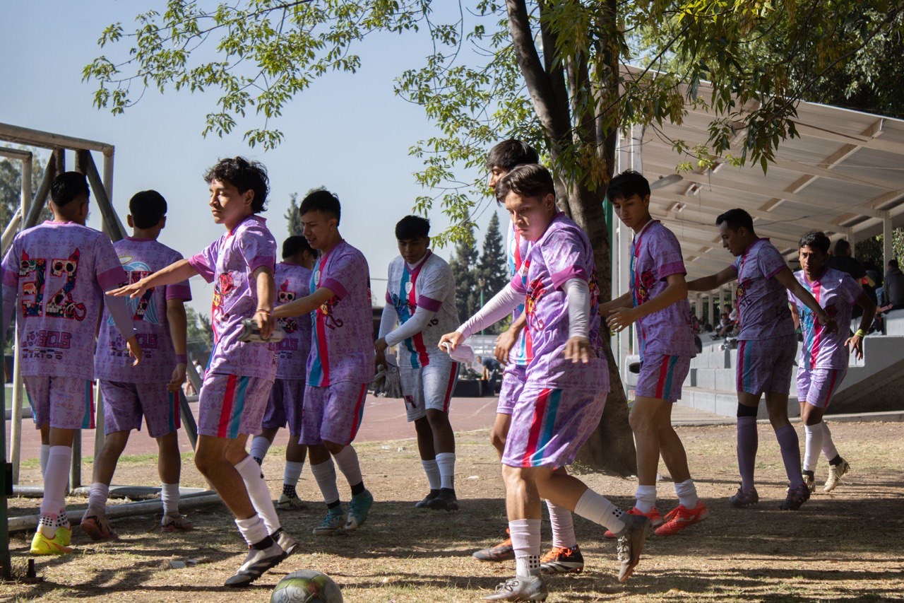 Mientras ocurre el partido de Arcoiris Cuautepec vs AIDA, el equipo Lobos realiza ejercicios de calentamiento. Se les ve disciplinados, concentrados y motivados. El director técnico les da algunas indicaciones. “Fuertes y poderosos”, es la consigna que gritan sus integrantes para animarse previo a su primer partido.