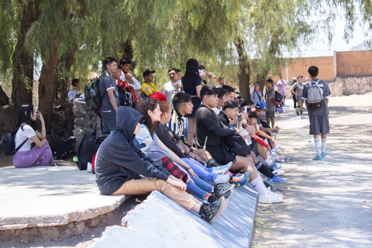 Para ingresar a la cancha de pasto sintético, es necesario atravesar una reja semi abierta, sostenida apenas por una cadena y un candado. En las gradas, ya hay personas colocándose el uniforme y otras más están refugiándose del sol. Ambas esperan a que inicie el primer Cuadrangular LGBT + Trans de Cuautepec.