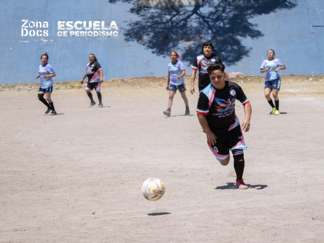 “Para ser mi primera vez jugando con ustedes, estamos jugando muy bien”, comenta una integrante de Arcoiris Trans a sus compañeras durante el medio tiempo. En la playera de sus contrincantes se puede leer la leyenda “Libres, sin transfobia en el deporte”.