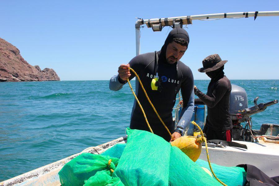 Un grupo de pescadores en Bahía de Kino, Sonora, no se sumerge a bucear solo para pescar, sino para cumplir el reto de repoblar una zona productiva de antaño de callo de hacha, que se convirtió en un desierto a causa de la sobreexplotación.