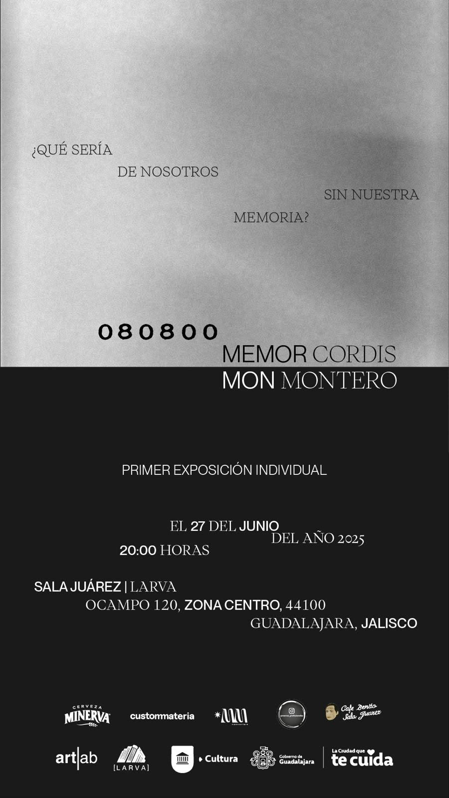 La inauguración de esta inquietante y prometedora exposición será el próximo viernes 27 de junio en la Sala Juárez de Larva (Ocampo 120, Zona Centro, Guadalajara, Jalisco) a las 20 horas, con acceso libre a todo público.