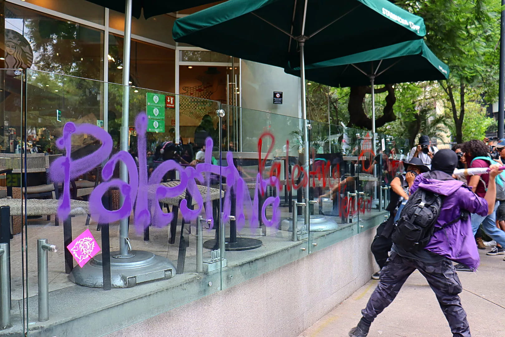 La movilización culminó con un grupo de jóvenes encapuchados que realizaron pintas en el foro Lindbergh y destrozos a establecimientos comerciales durante su recorrido por calles como Sonora, Ámsterdam y Paseo de la Reforma. Algunos rompieron vidrios de cafeterías y restaurantes, mientras coreaban consignas como “¡Fuera gringos!”, “¡Esta no es tu casa!” y “¡Comercio local, nuestra capital!”.