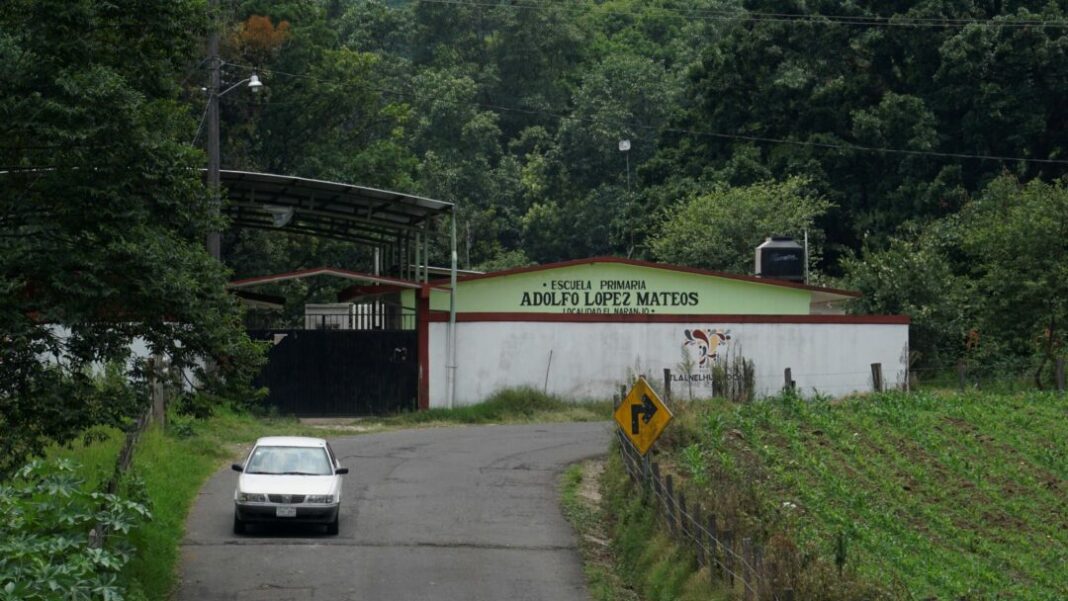 Esta escuela rural, fundada hace 30 años, está en El Naranjo, una de las comunidades del municipio de Tlalnelhuayocan, en el Golfo de México. Desde 2010 llegaron hasta allí “los paperos” a alquilar predios para las siembras. Ahora la escuela está abandonada y polvosa, y en el patio crece la hierba, mientras los cultivos permanecen.